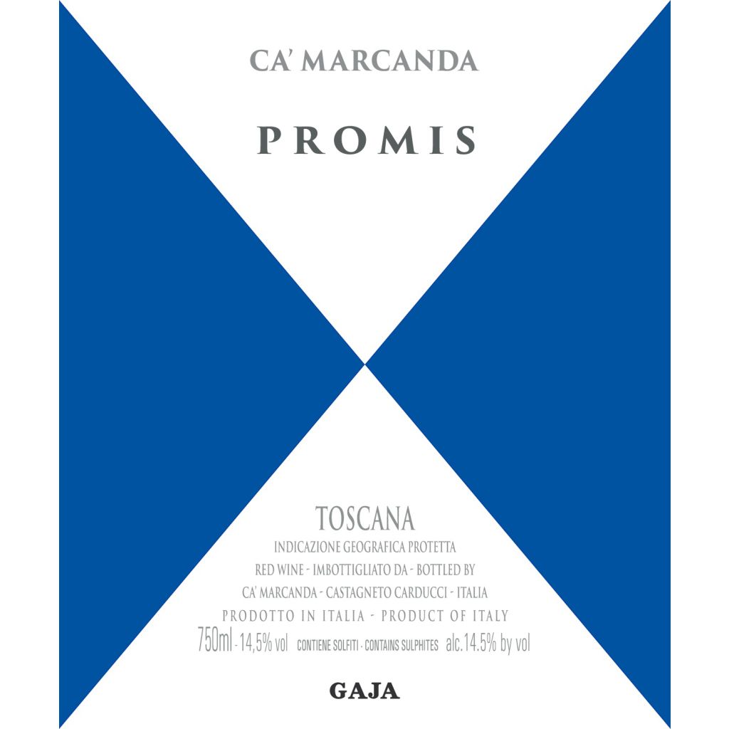 Promis je expresivní Super Tuscan ze statku Ca’ Marcanda (Angelo Gaja) v Bolgheri. Název odkazuje na italské „promessa“ – slib kvality, který tato značka splňuje v každém ročníku. Ročník 2023 představuje moderní, svěží a zároveň strukturovaný styl, charakteristický čistou ovocností a harmonickou vyvážeností.